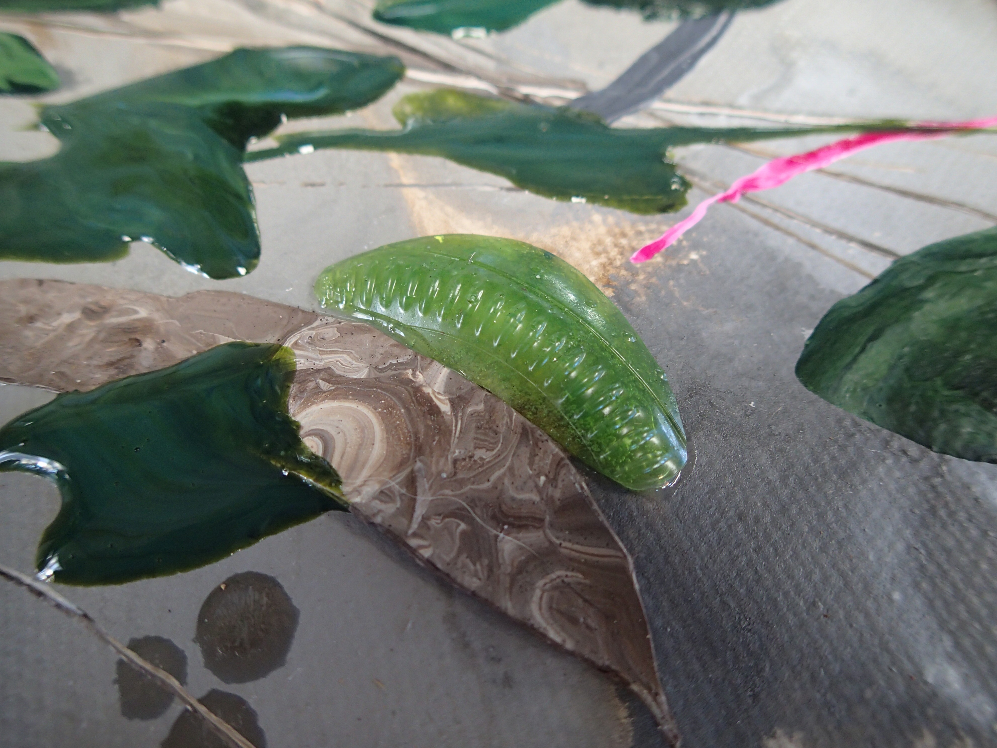 The piece contains over one hundred fragments of human artefacts cast from acrylic paint, in a technique I have developed over the past six years. Amongst these artefacts are ropes, single use plastics such as straws, balloons, lighters, bottle caps, and packaging. All of these have been collected by me from Australian beaches, many from Bruny Island. In addition to these fragments are drone components and rotor blades. The incidences of clashes between birds and drones are increasing as both professional and recreational drone use grows. Many of the plastics found in the nest will be collected incidentally as nesting materials, but others will be present as a byproduct of ingestion occurring throughout the food chain and terminating in the diet of an apex predator.